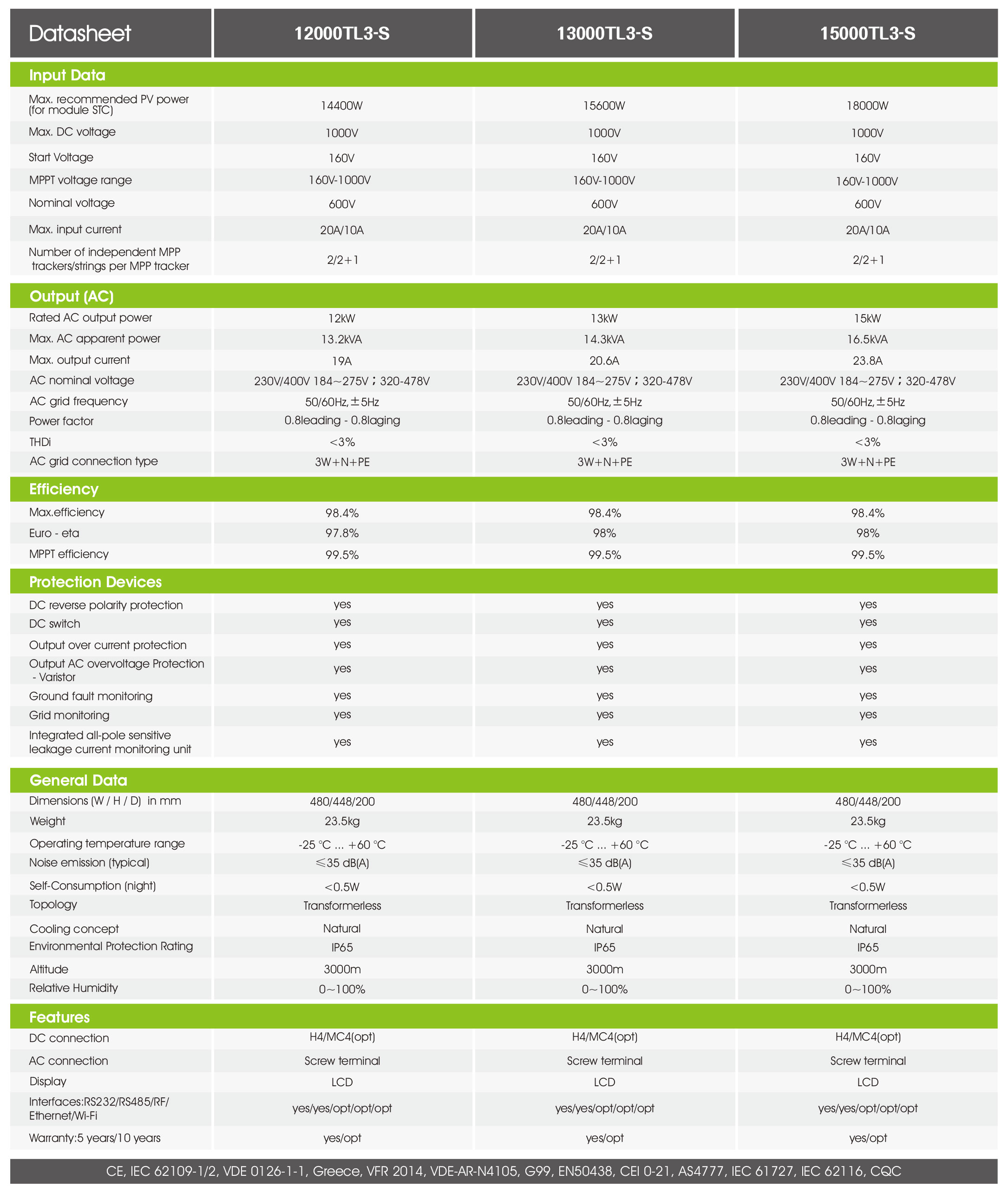 12-15KW, Three Phase, Dual MPPTs