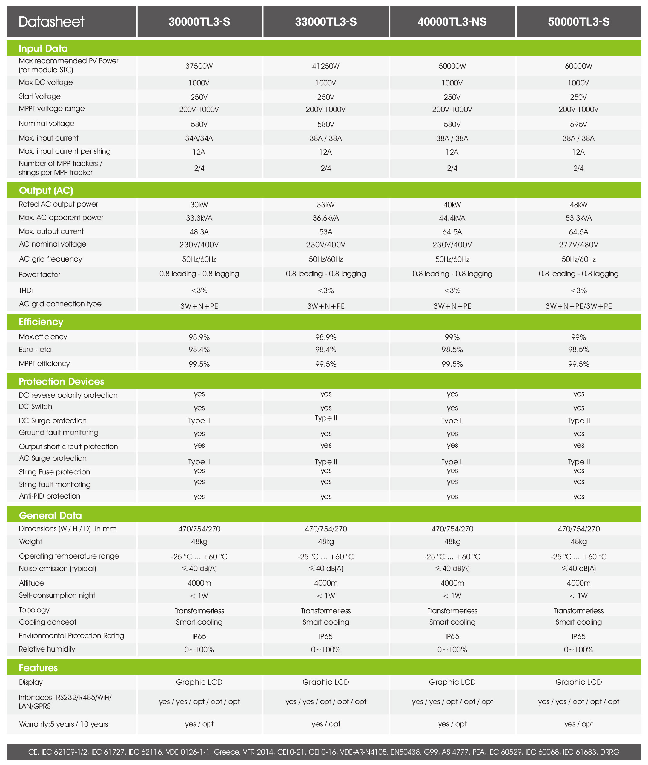 50-60kW Three Phase, 1 MPPT, 11 strings